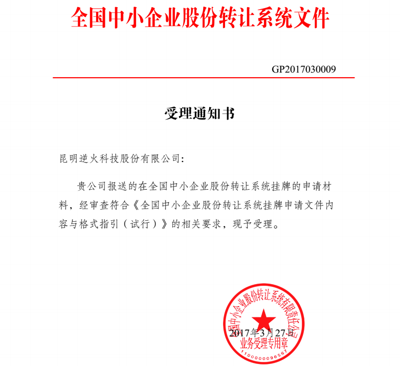逆火科技新三板掛牌申請(qǐng)已獲受理